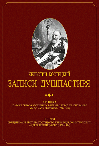 Записи душпастиря : хроніка парохії греко-католицької в Чернівцях від єй існовання аж до часу біжучого, (1774-1918) ; листи священника Келестина Костецкого з Чернівців до митрополита Андрея Шептицького, (1900-1914) / упорядкування Нестора Мизака, Андрія Яремчука ; Чернівецький національний університет імені Юрія Федьковича ; Чернівецька єпархія Української греко-католицької церкви ; Чернівецький обласний краєзнавчий музей .