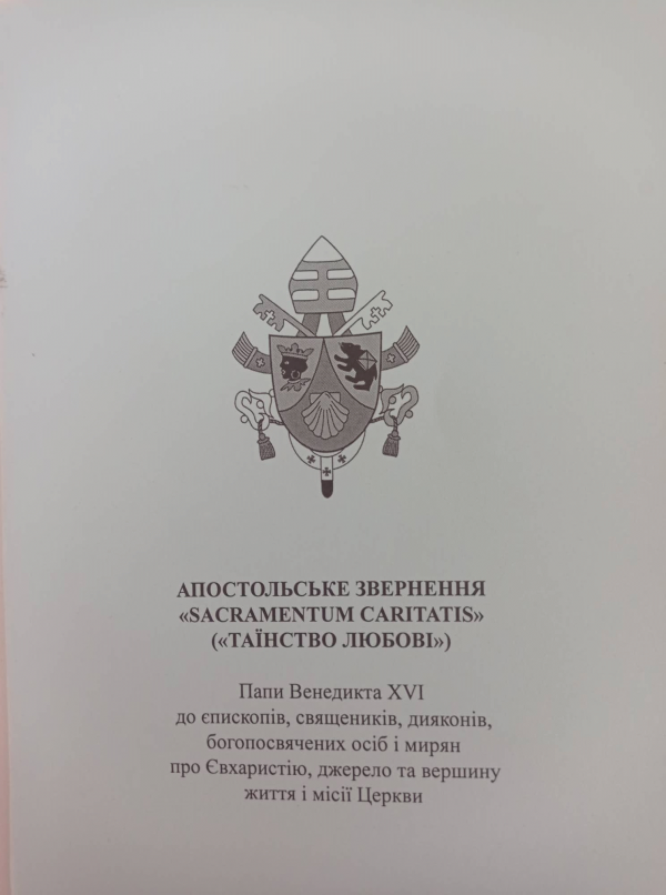 Апостольське звернення "Sacramentum caritatis" ("Таїнство любові") : Папи Венедикта XVI для єпископів, св’ящеників, дияконів, богопосвячених осіб і мирян про Євхаристію, джерело та вершину життя і місії Церкви.