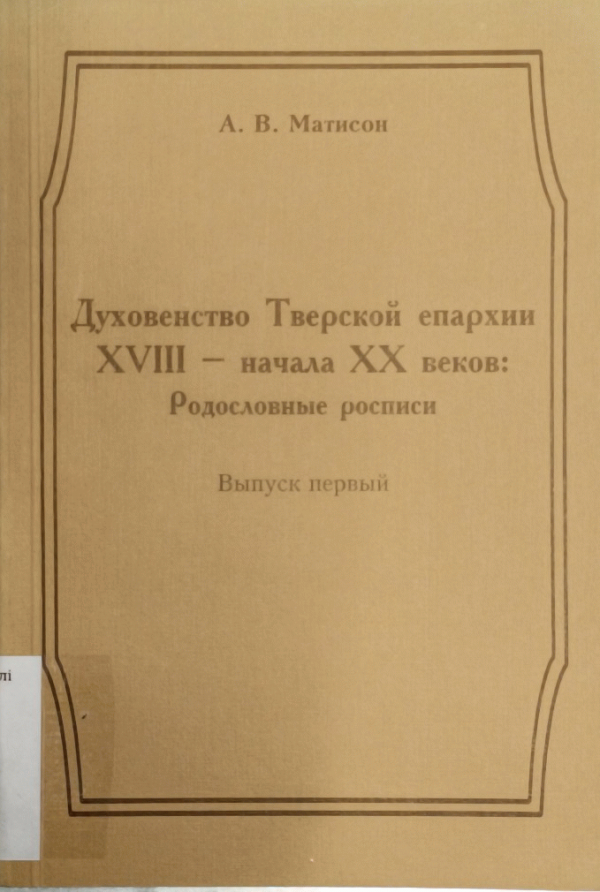 Духовенство Тверской епархии XVIII - начала ХХ веков : родословные росписи / А.В. Матисон.
