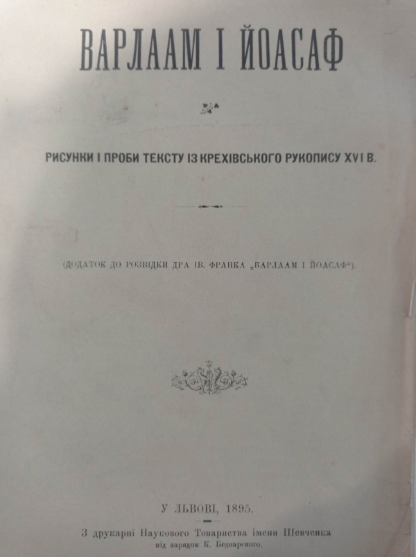 Варлаам і Йоасаф : рисунки і проби тексту із Крехівського рукопису XVI в. : (додаток до розвідки д-ра Ів. Франка "Варлаам і Йоасаф").