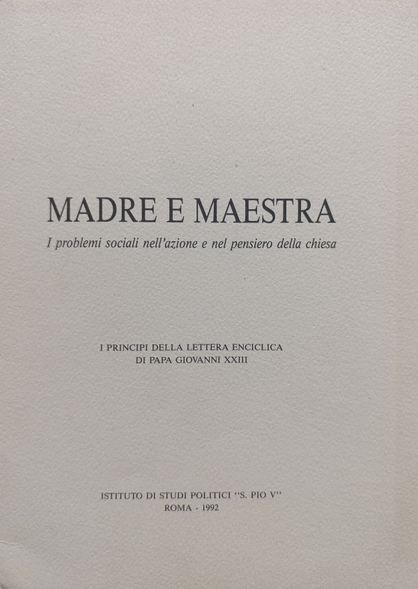 Madre e Maestra i problemi sociali nell'azione e nel penseiro della chiesa : i principi della Lettera Encíclica di Papa Giovanni XXIII / Papa Giovanni XXIII ; introduzione di Don Daria Composta.