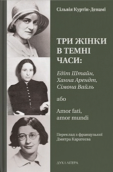 Три жінки в темні часи : Едіт Штайн, Ханна Арендт, Сімона Вайль, або Amor fati, amor mundi / Сільвія Куртін-Денамі ; переклад з французької Дмитра Каратєєва ; Національний університет "Києво-Могилянська Академія", Центр європейських гуманітарних досліджень, Центр досліджень історії та культури східноєвропейського єврейства.