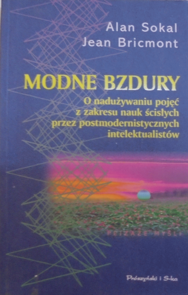 Series: Idee stanowiska ludzie.Publisher: Warszawa : Prószyński i S-ka, 1998. Other title: Fashionable nonsense postmodern intellectuals' abuse of science.Availability: Items available for loan: Сховище дослідницьке [Call number: Q175 .S65165 1998] (1).