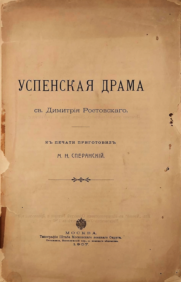 Успенская драма св. Димитрія Ростовскаго / къ печати приготовилъ М.Н. Сперанскій.